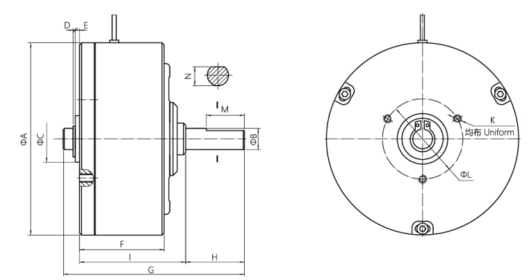 以自冷式磁滯制動器為基礎(chǔ),內(nèi)部加以水冷卻通道,通過水冷卻來吸收連續(xù)滑差產(chǎn)生的熱量。具有噪音低、功率大的優(yōu)點。廣泛應(yīng)用于測試負載和高速大張力放卷場合。(具體尺寸請來電索。9.20