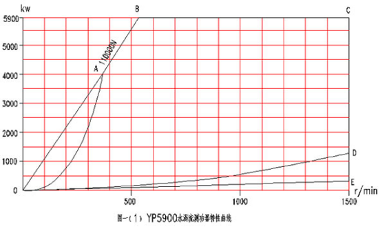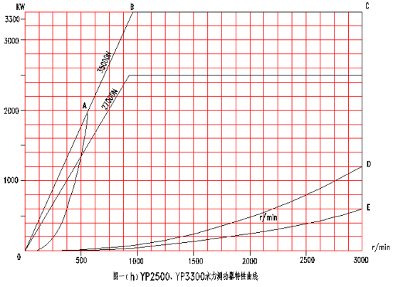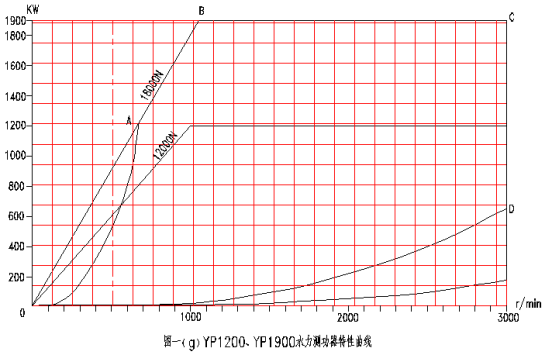 AC直線(YP20型)與BC直線為不超過測(cè)功機(jī)最大容許的排水溫度時(shí),測(cè)功機(jī)所能吸收的最大功率限制線。