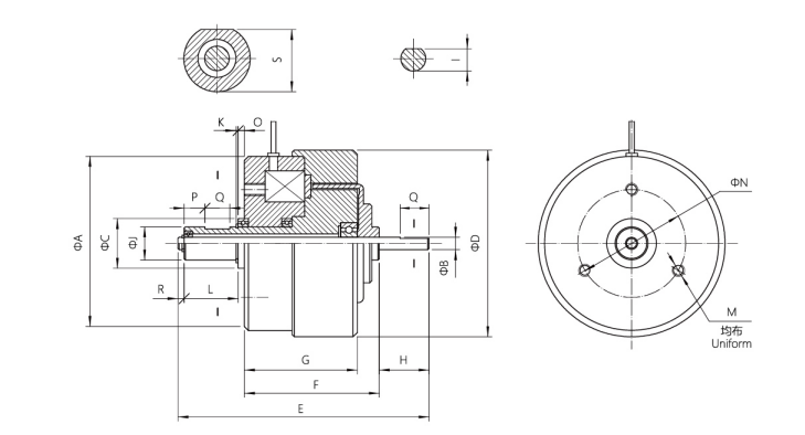 Overview: Hysteresis clutch is based on the hysteresis principle,and uses hysteresis to transmit torque. The excitation current and the transmitted torque are basically linear. In the case of no slip speed, it can transmit a certain torque, and has the advantages of fast response,simple structure, no pollution ,no noise,no impact vibration, and energy conservation. It is a multi-purpose,superior performance automatic control component. It can be widely used in the field,of tension control for buffer starting,overload protection,speed regulation,and winding in winding systems. Specification